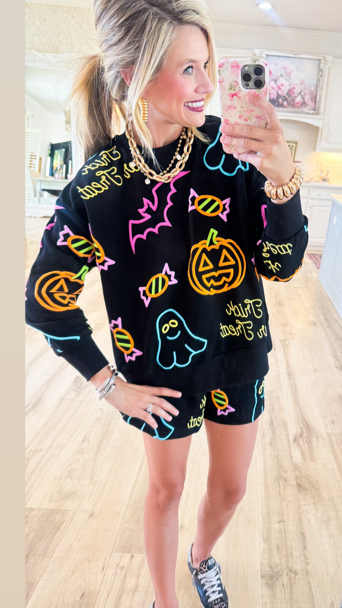 -long sleeves, elastic waitband! Runs true to size! Cutest set ever!!!