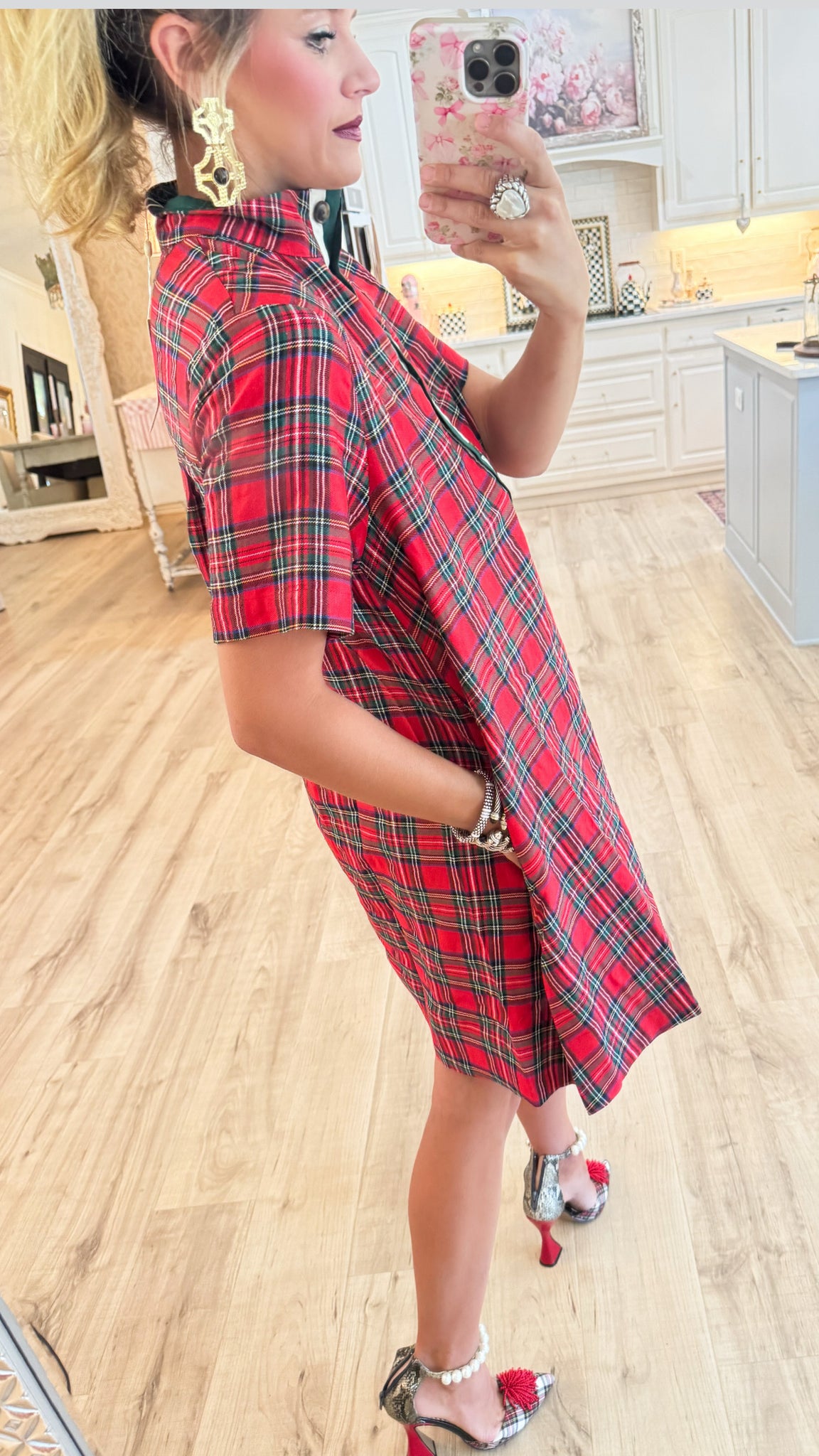-short sleeve-contrast button placket-collar lining-side pockets -lined-small measurements, length 33 1-2” bust 42”
