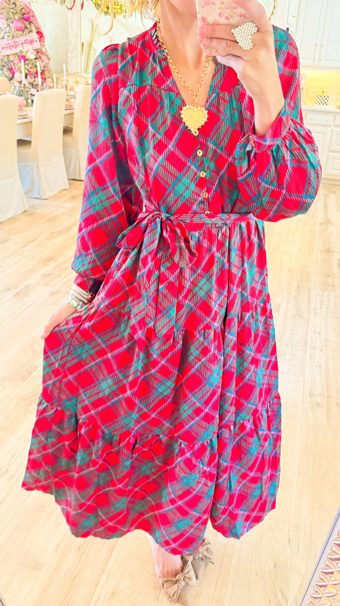 Red and Green Plaid Maxi Dress
