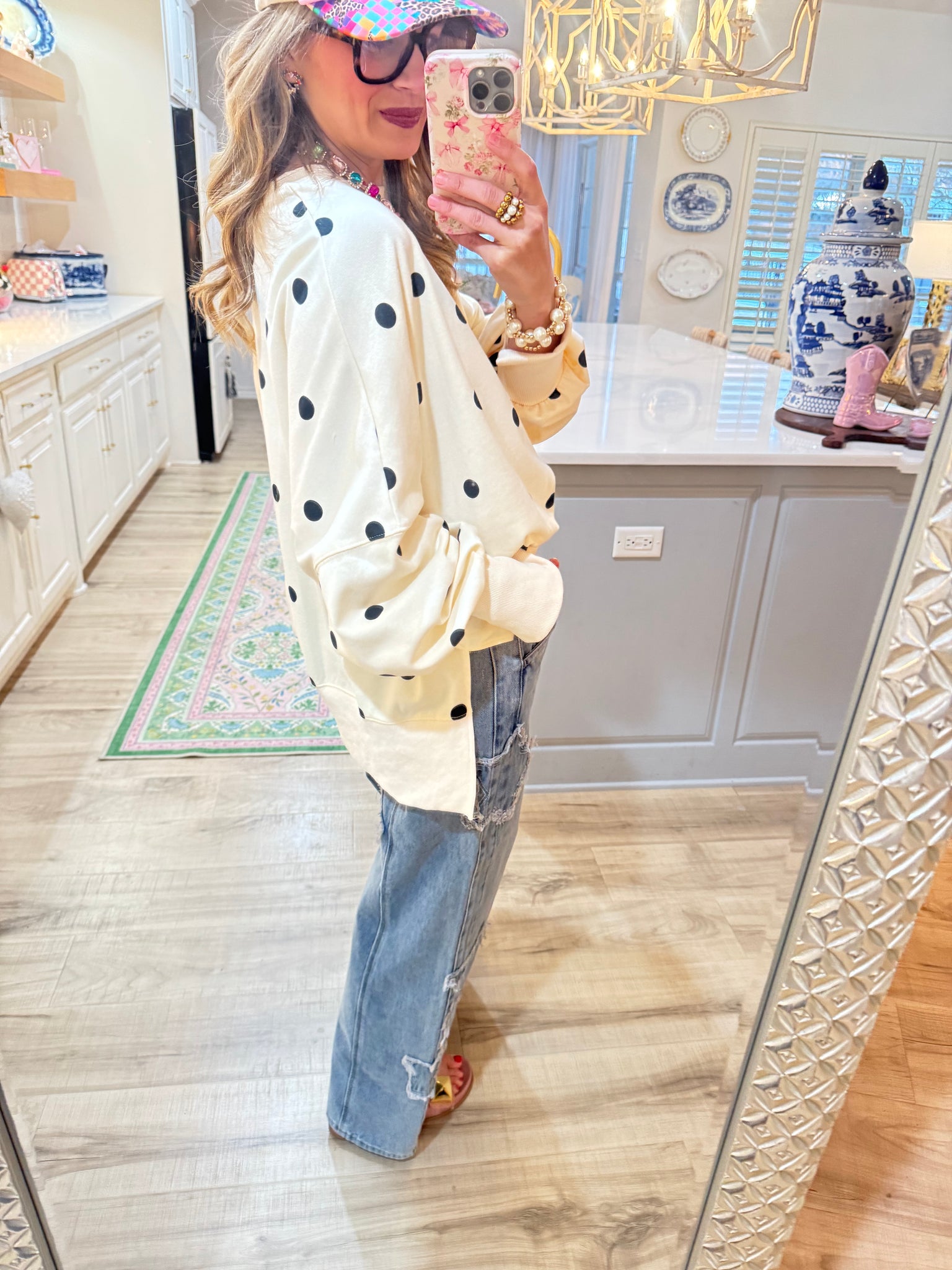 Ivory and Black Polka Dot French Terry Oversized Sweatshirt