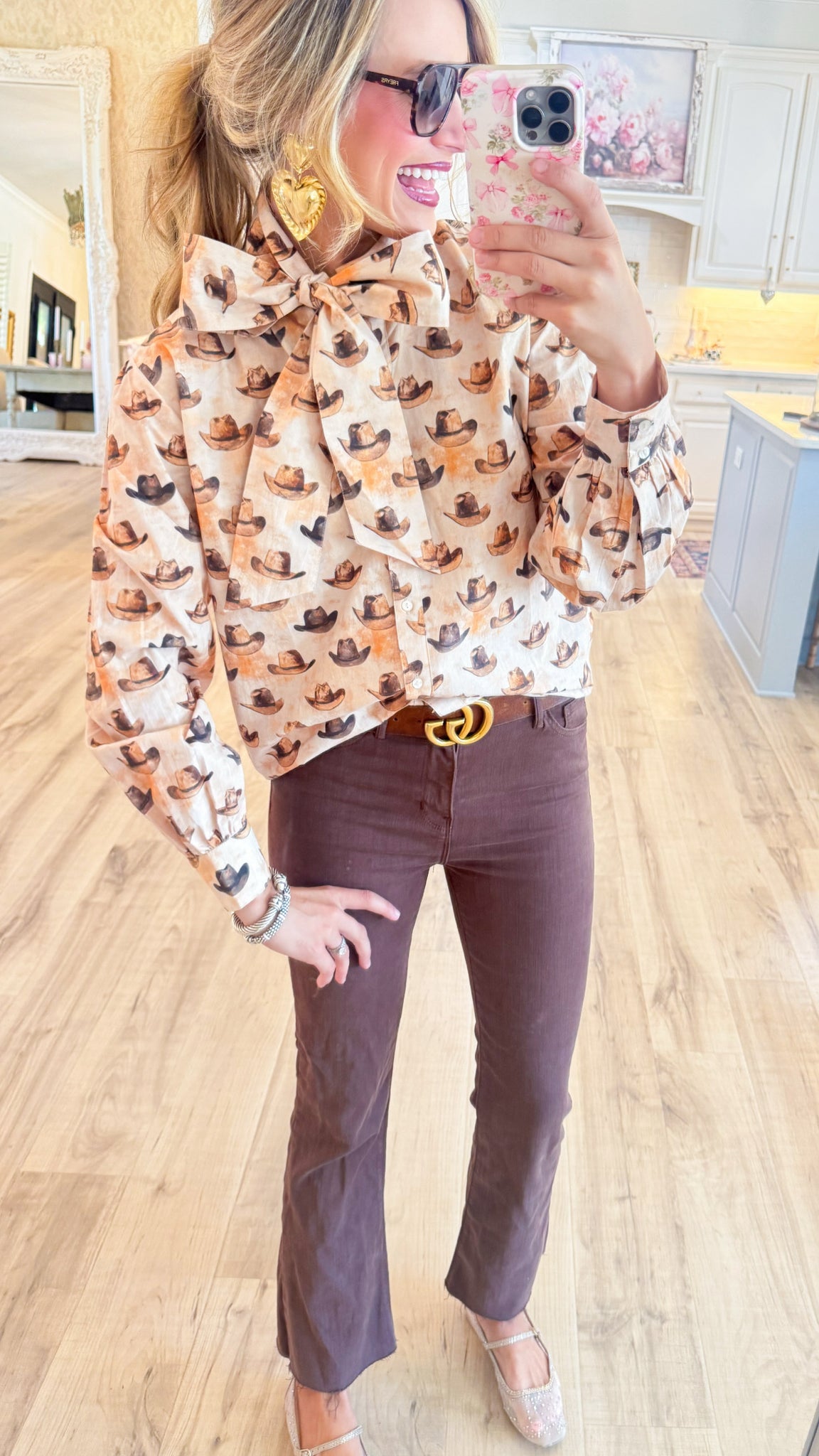 Beige Cowboy Hat Printed Top
