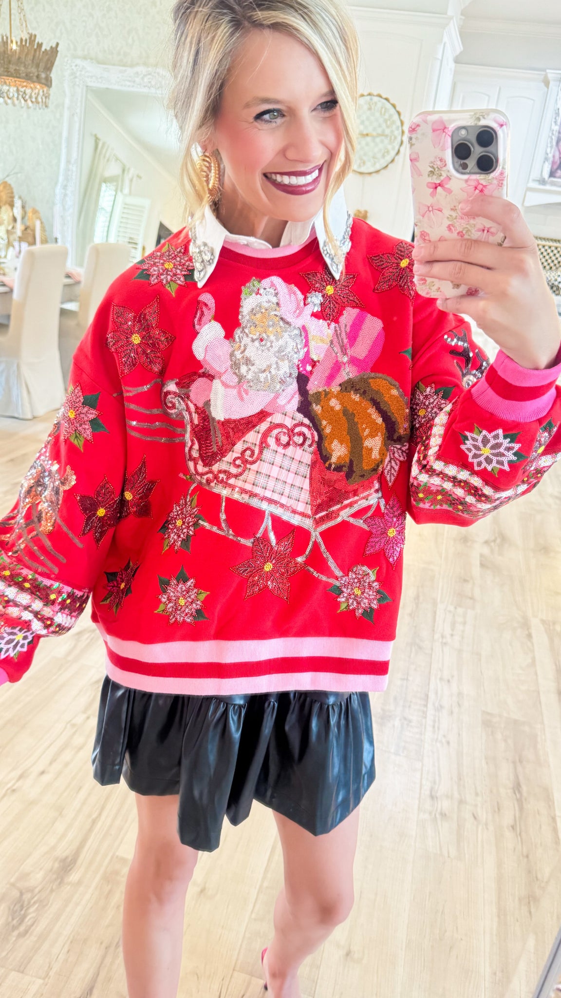 Queen of Sparkle Pink and Red Vintage Santa Sweatshirt