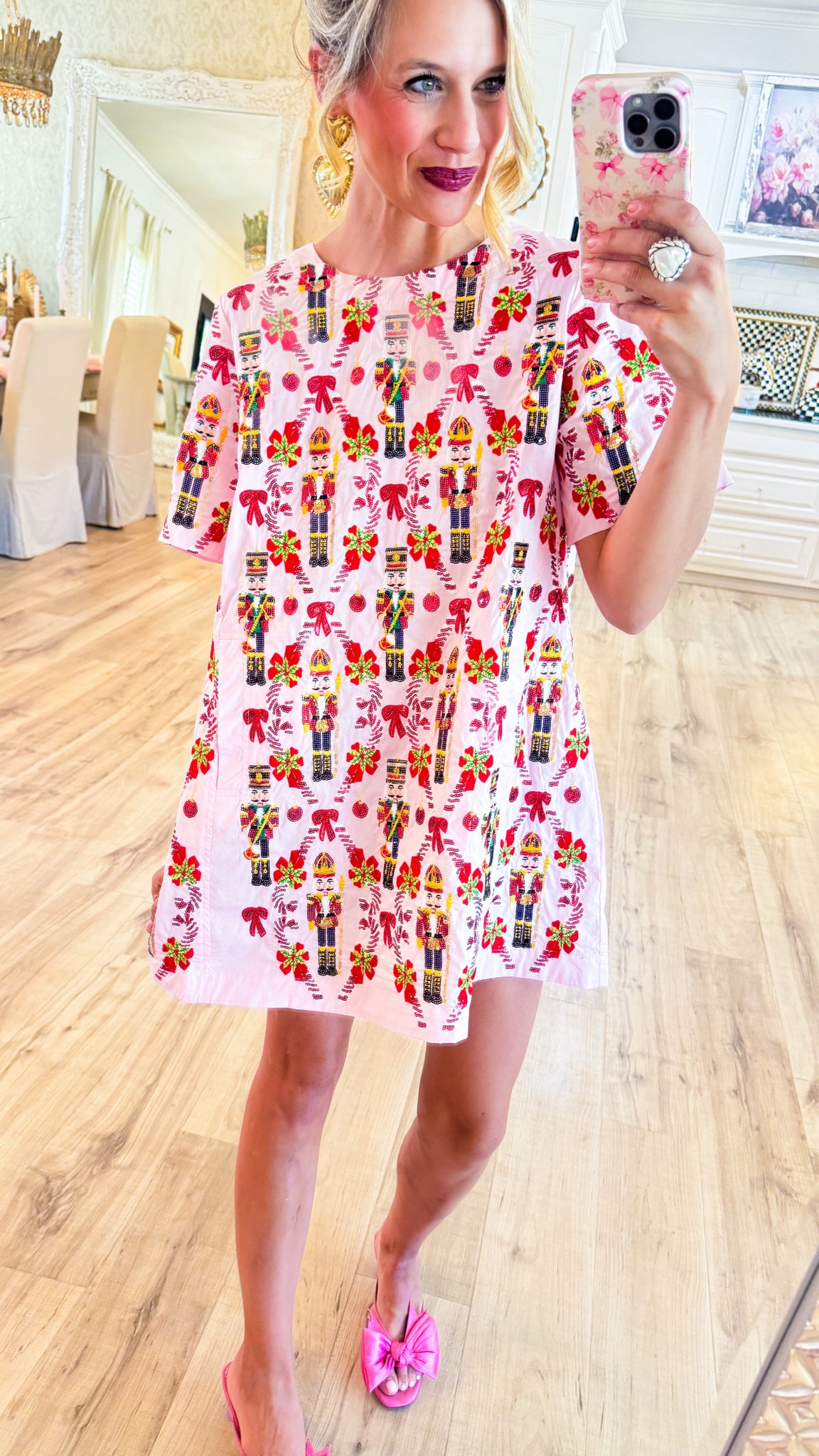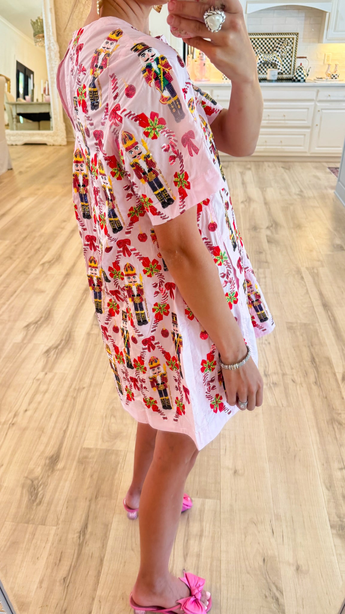 -short sleeves-round neckline-back keyhole closure-sequin detail