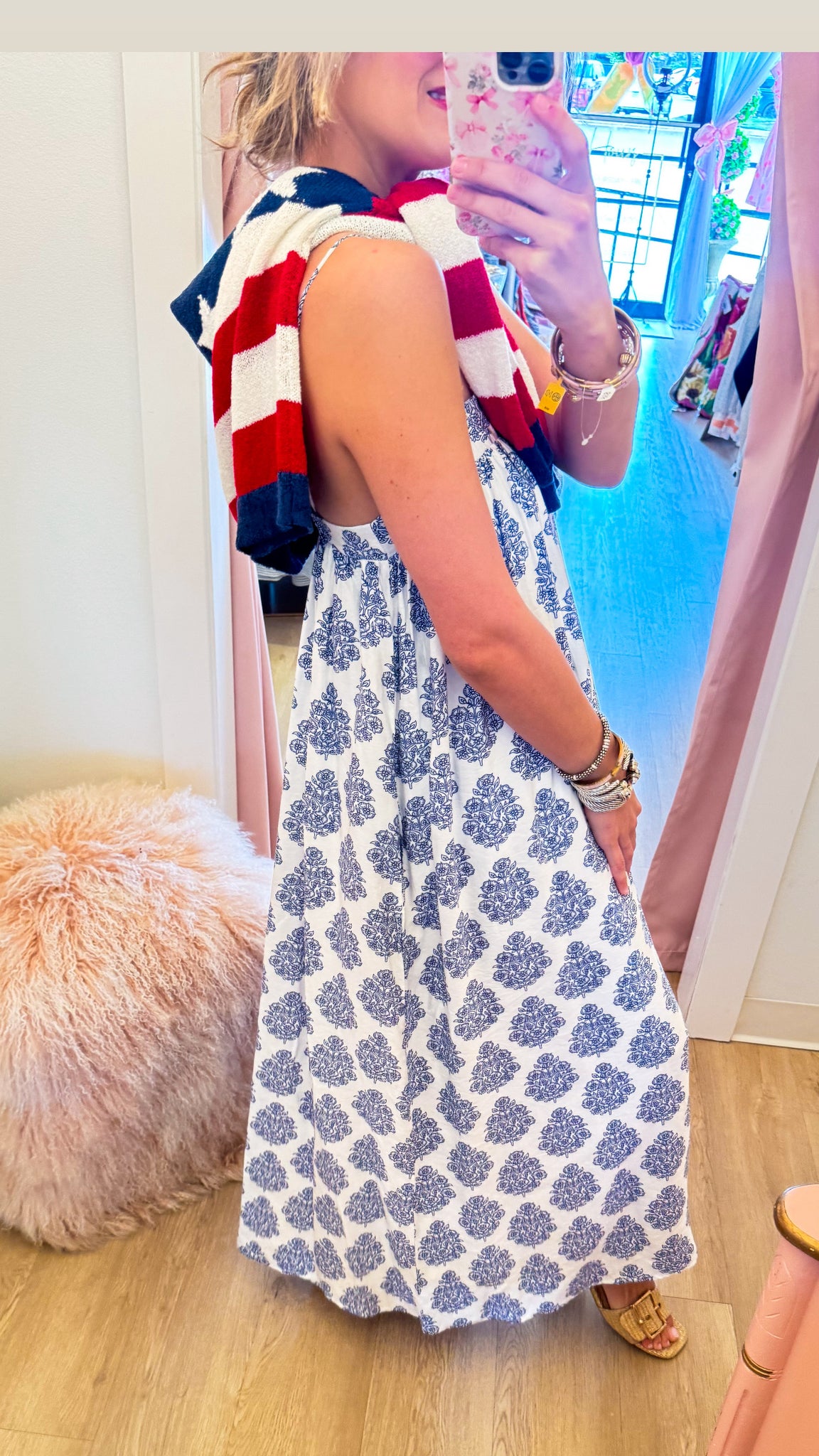 Blue and White Printed Maxi Dress