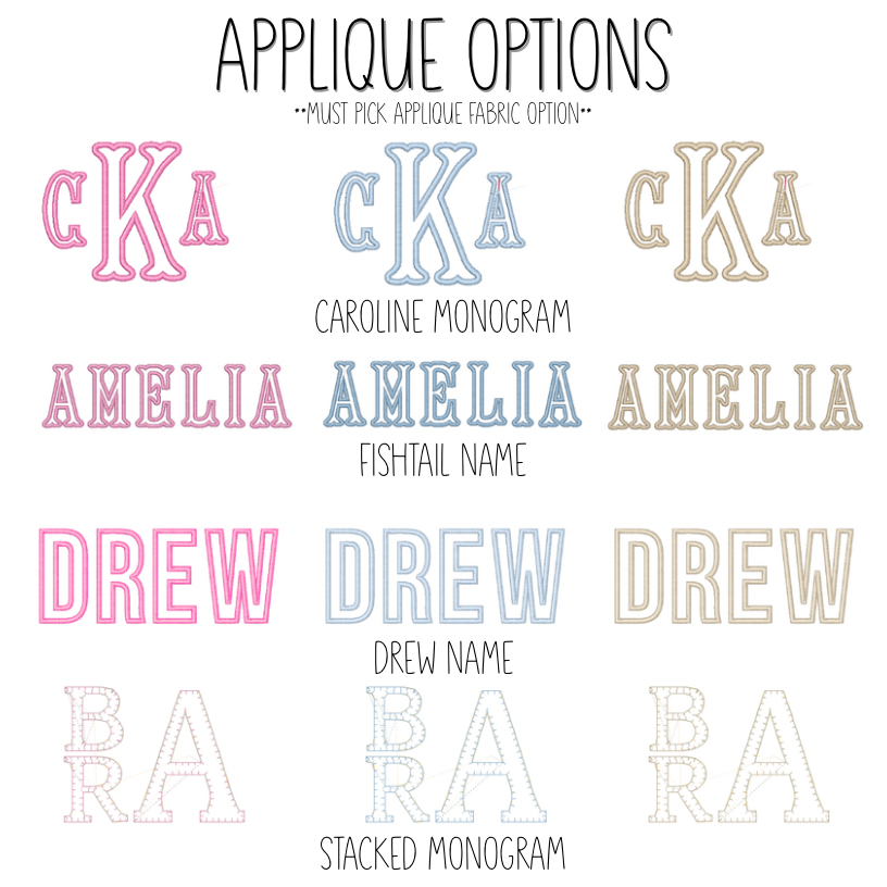Now available with personalization! Customize with your name, monogram, or bow. Choose from a range of fonts, thread colors, and appliques.