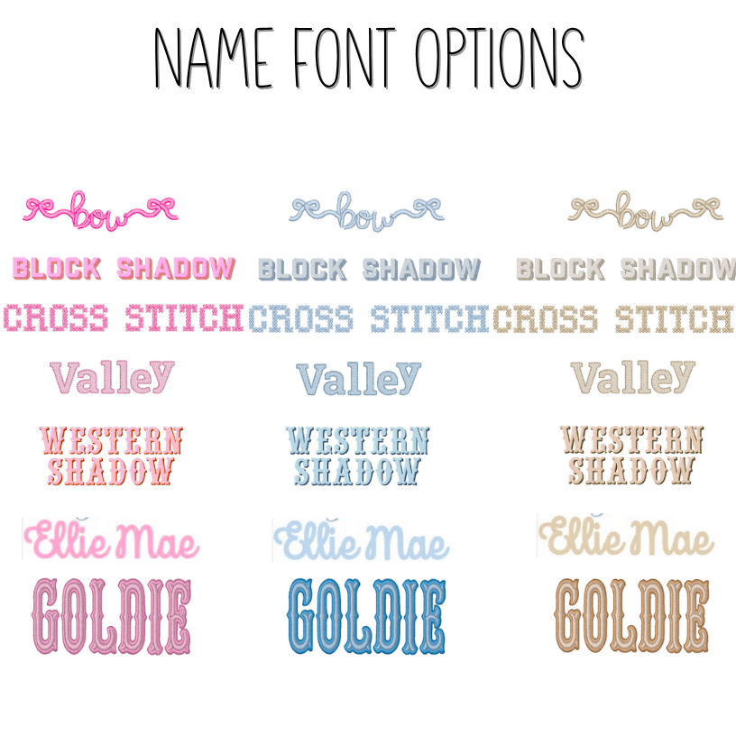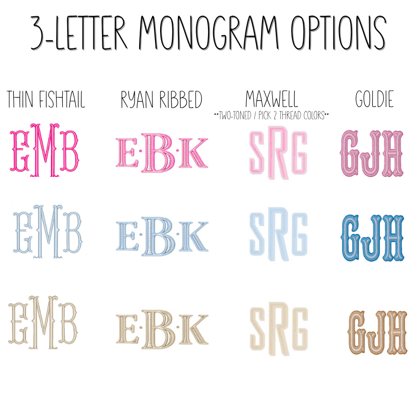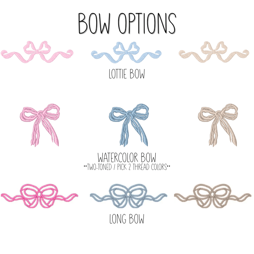 Now available with personalization! Customize with your name, monogram, or bow. Choose from a range of fonts, thread colors, and appliques.