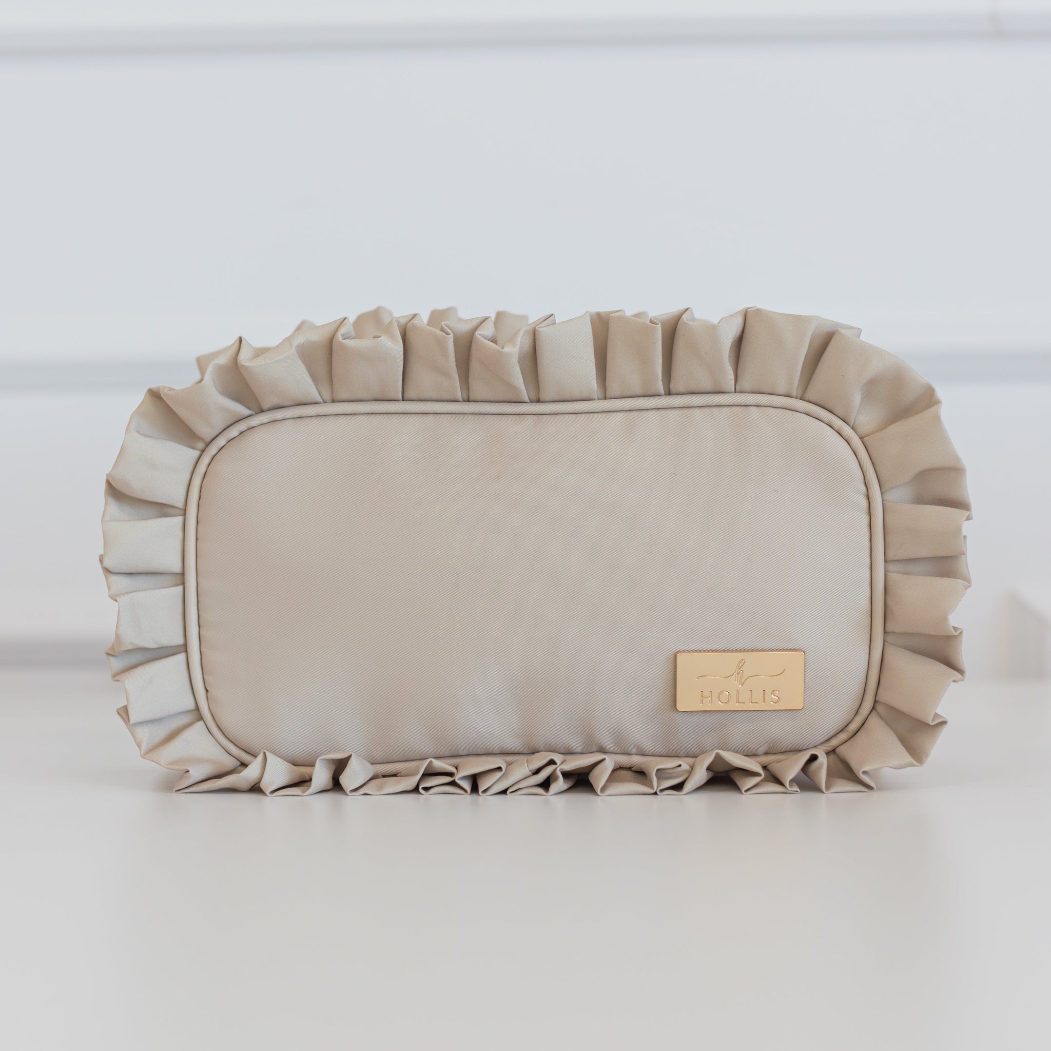 Introducing our brand-new nylon large pouch, designed to keep your essentials organized and easily accessible. Featuring a stylish ruffled edge detail, this pouch is as chic as it is functional. Perfect for storing makeup, toiletries, or any small essentials, this pouch offers both convenience and elegance in one.