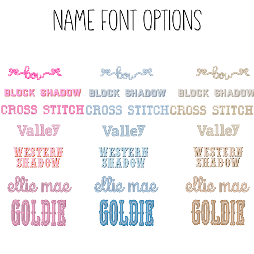 Now available with personalization! Customize with your name, monogram, or bow. Choose from a range of fonts, thread colors, and appliques.