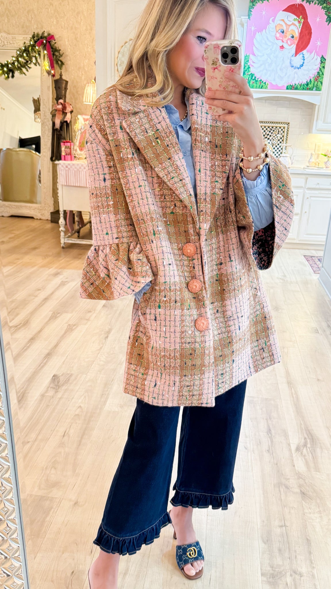 Ivy Jane Multi Ruffle Sleeve Plaid Coat