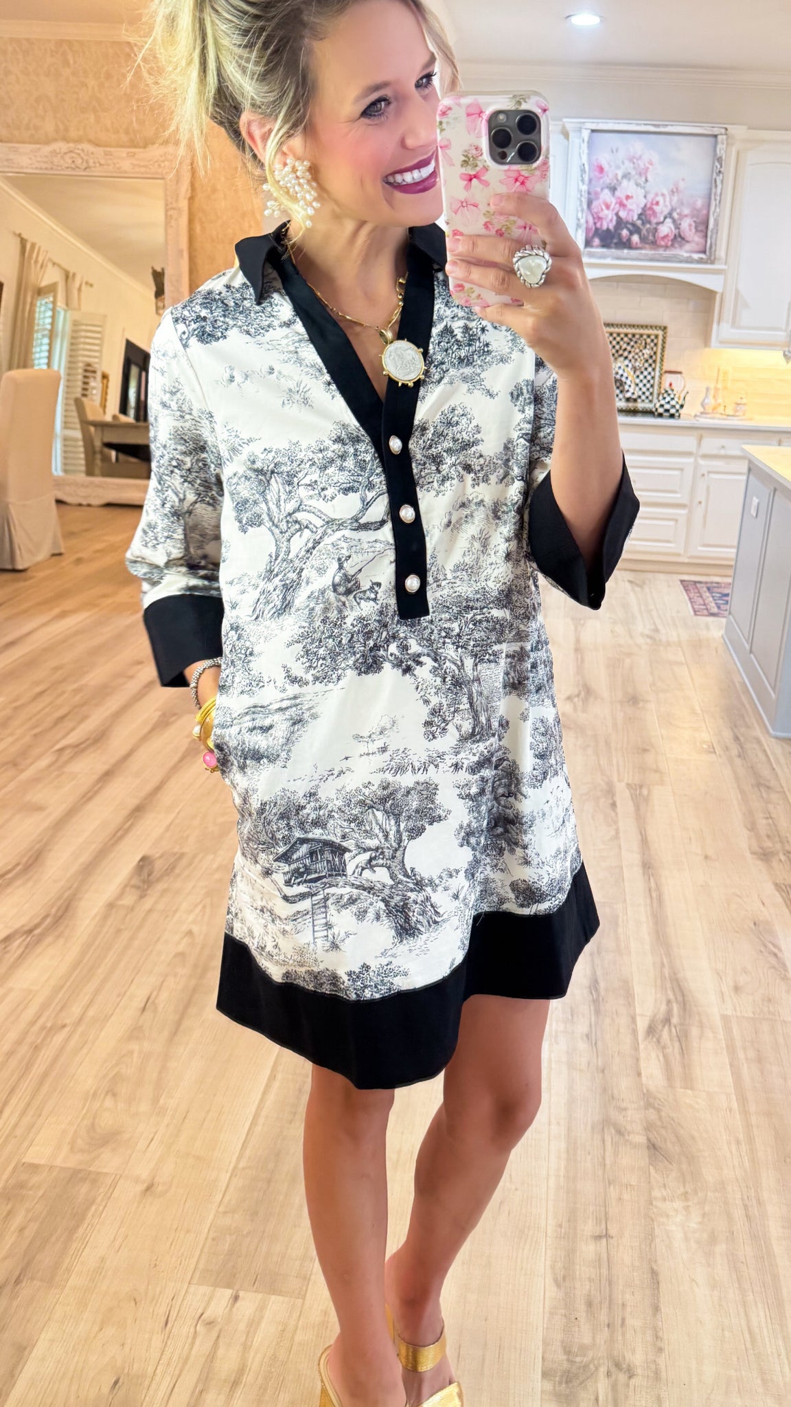 Black Toile 3/4 Sleeve Dress