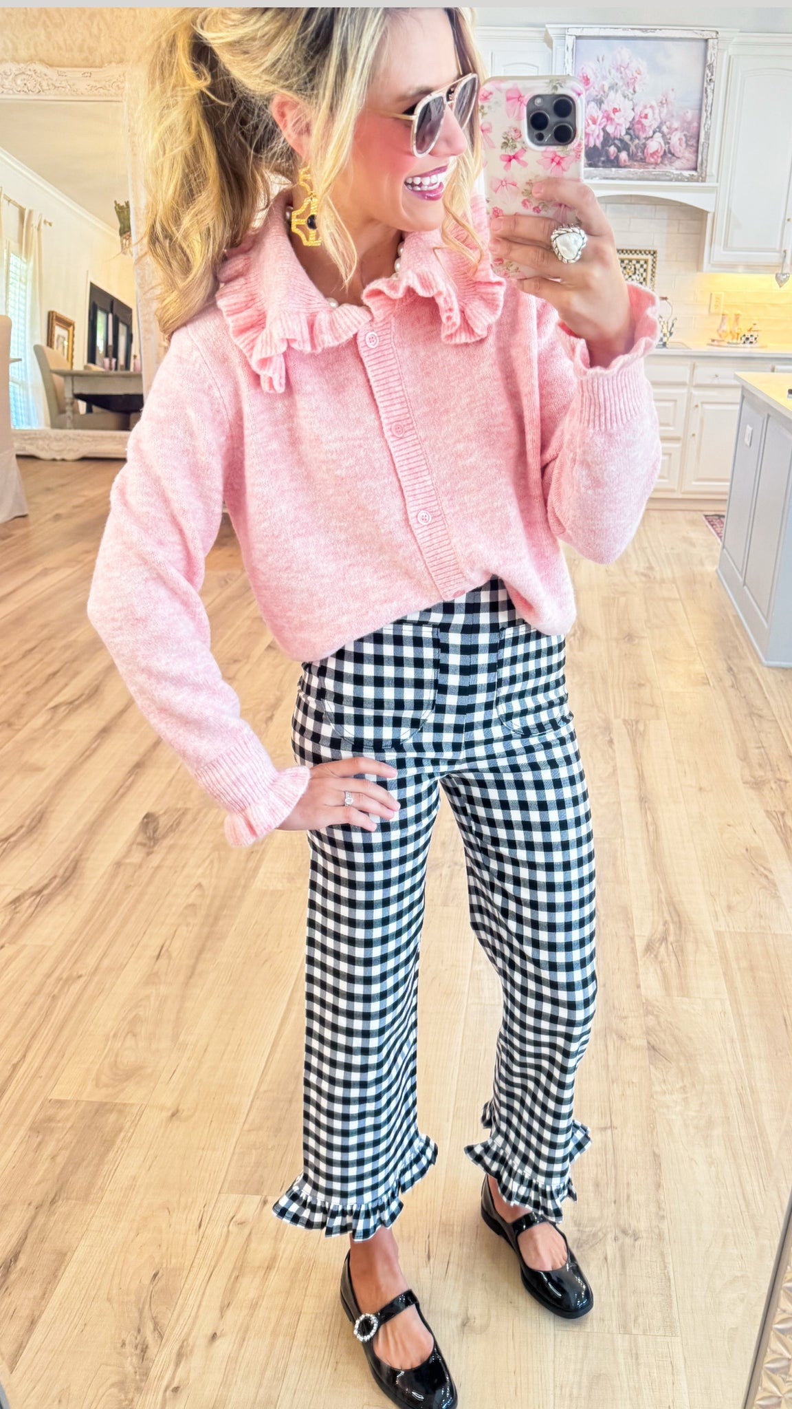-front patch pockets-back zip closure-ruffle hem-small measures 25 1/2" inseam