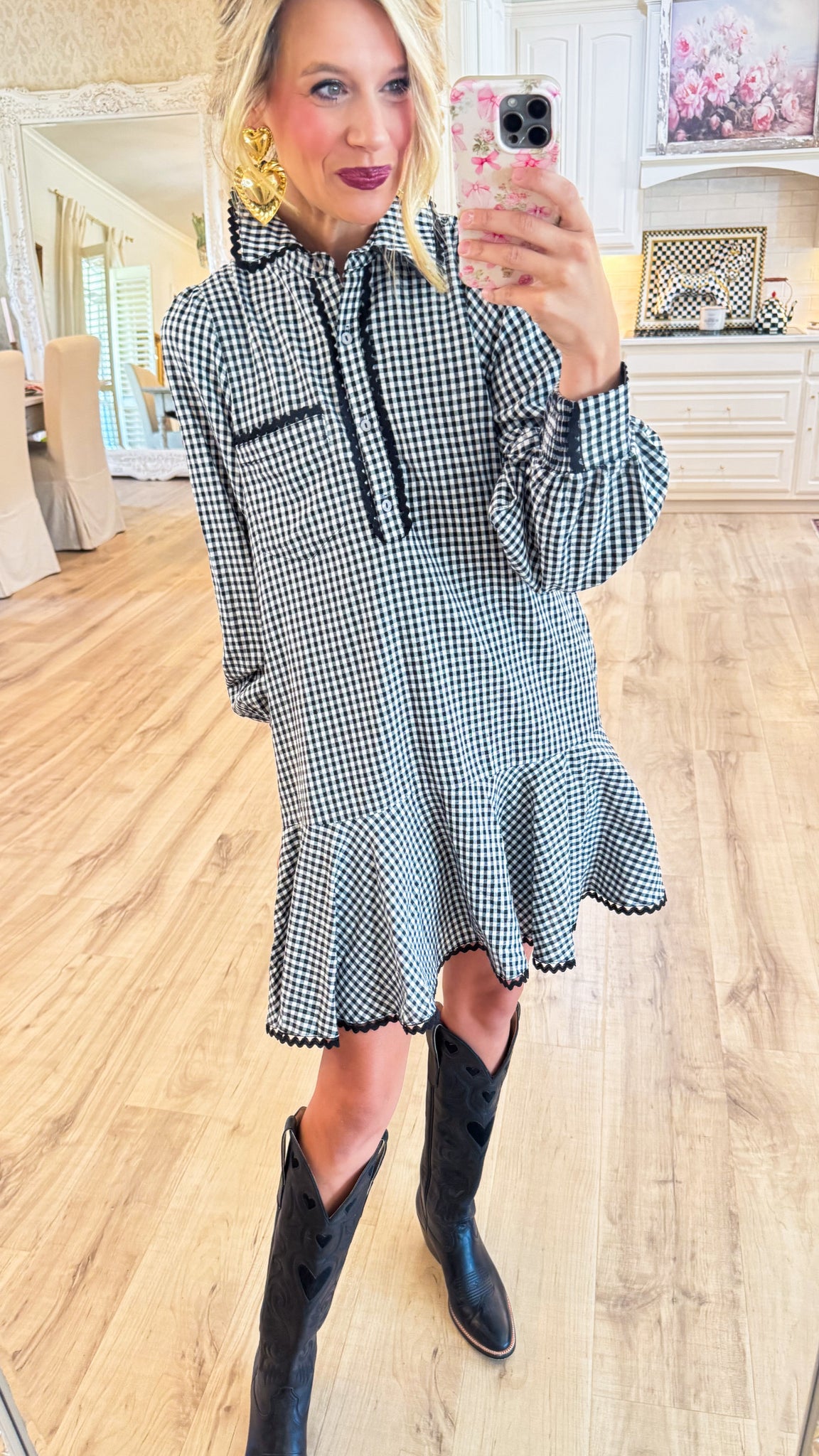 -long sleeve-collard-scalloped trim-chest pocket-half button closure -small measurements, length 36” bust 42”