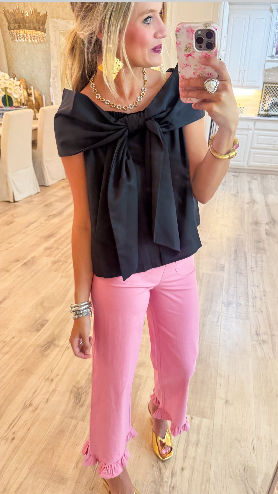 -off the shoulder bow detail-elastic band-lightweightsmall measures 41" bust