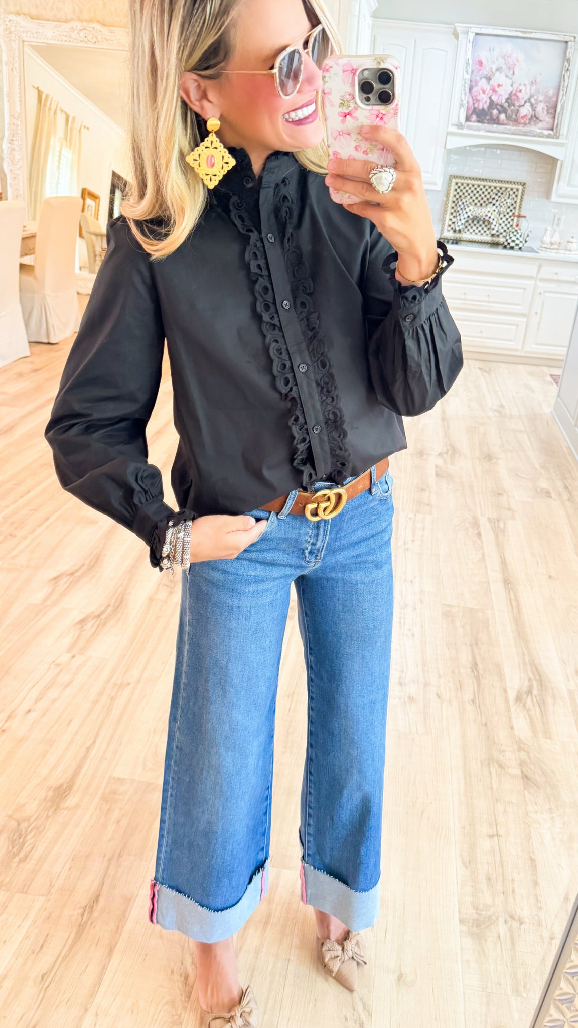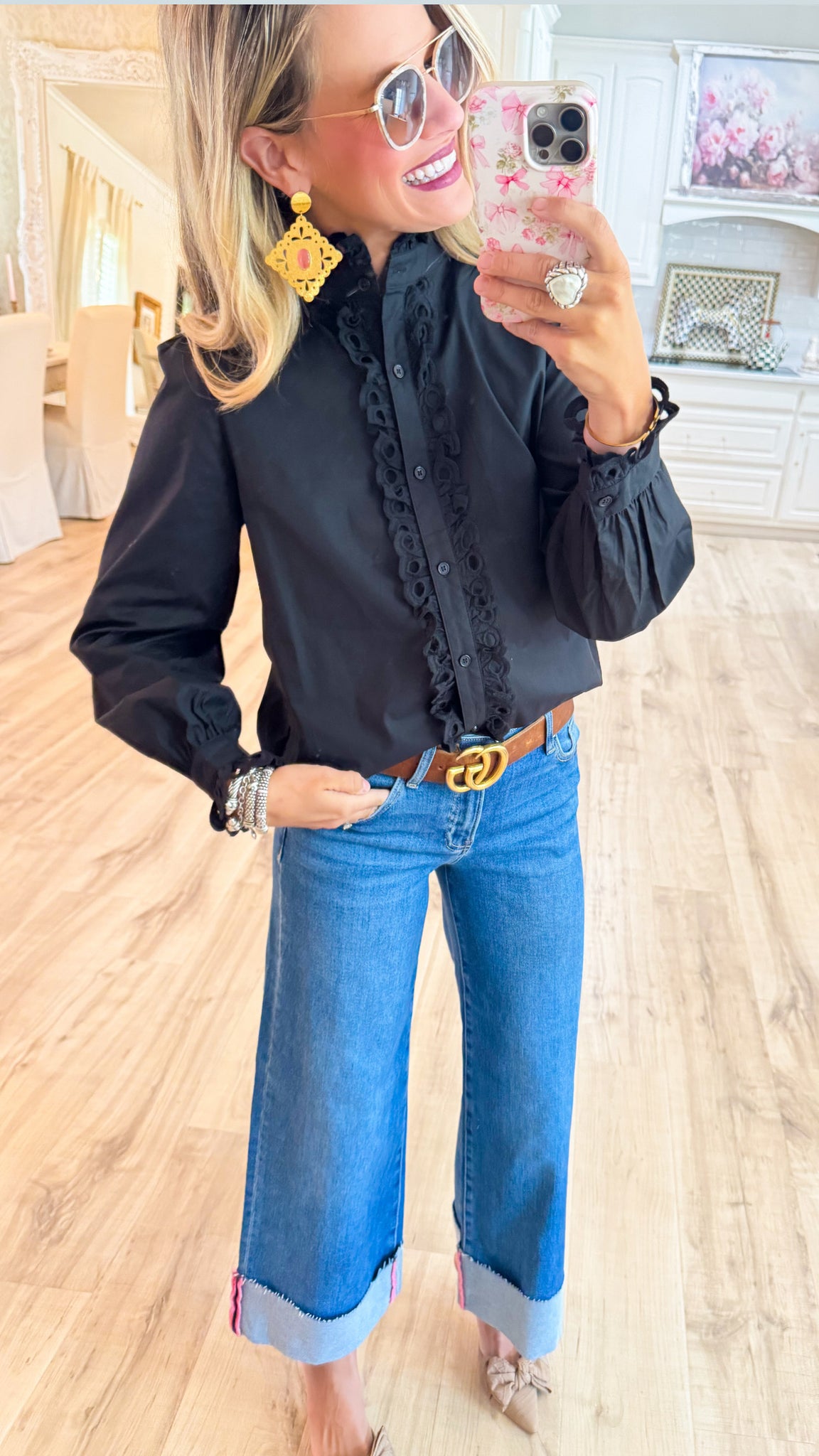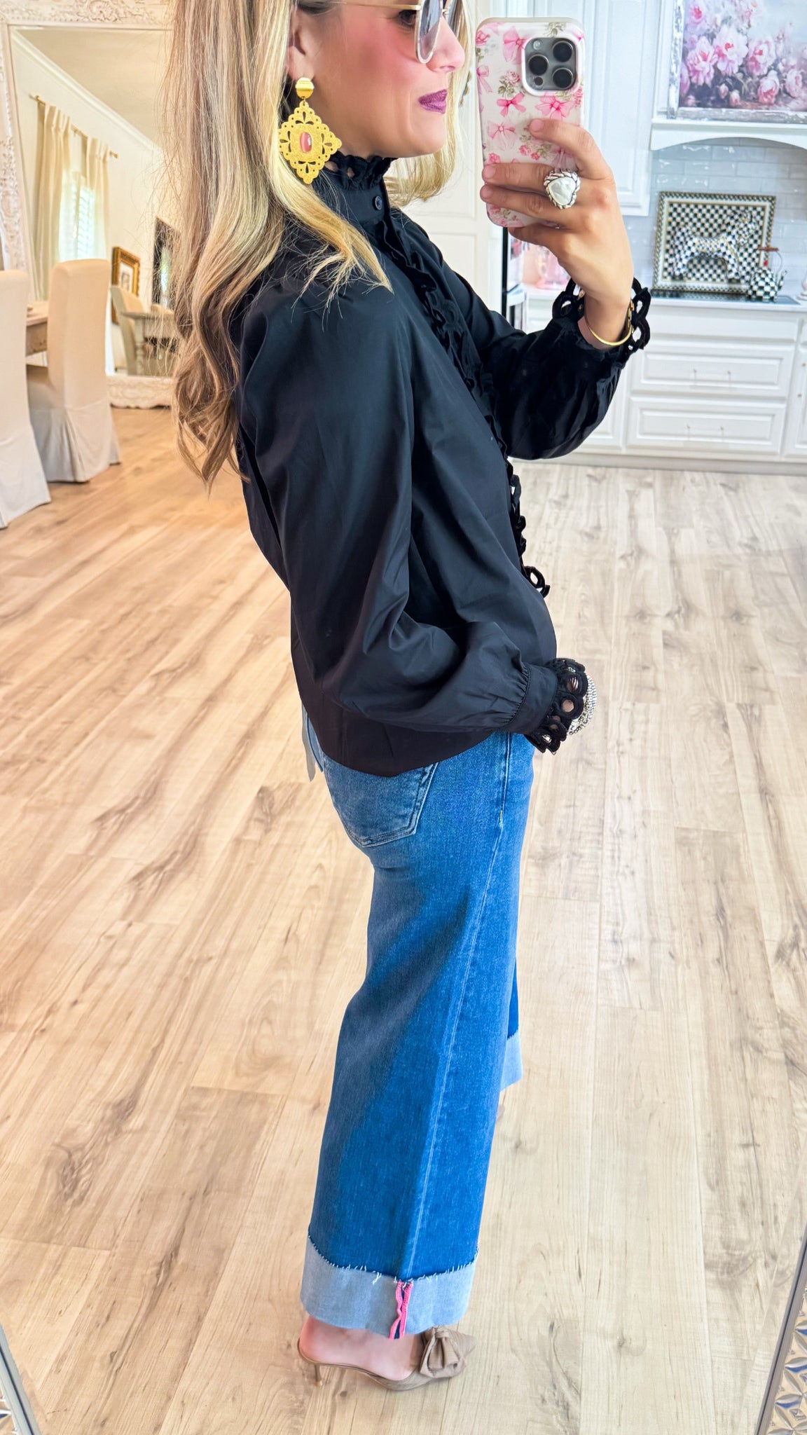 Black Eyelet Accent Classy Blouse