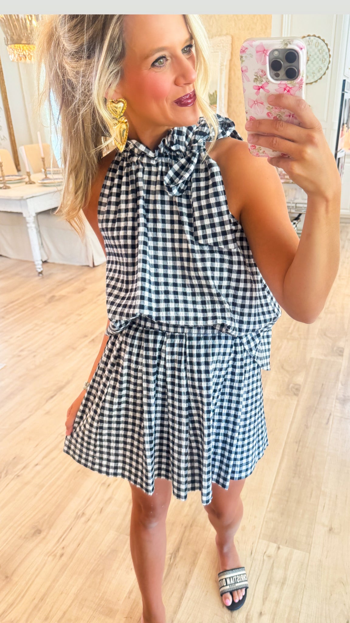 -sleeveless-ruffle neck-self tie detail-elastic waistband-small measures 16 1/4" in lengthruns generous!
