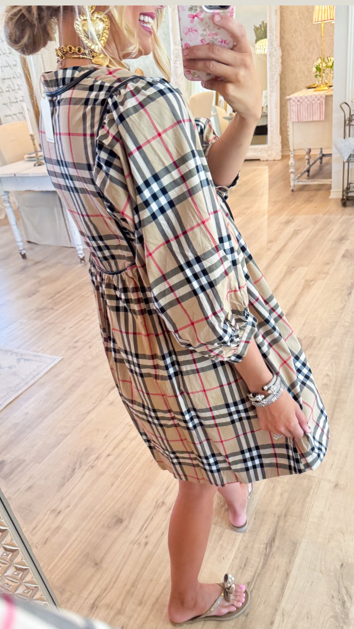 The cutest plaid dress! Love the 3/4 sleeve. Dress is lined! Runs true to size!