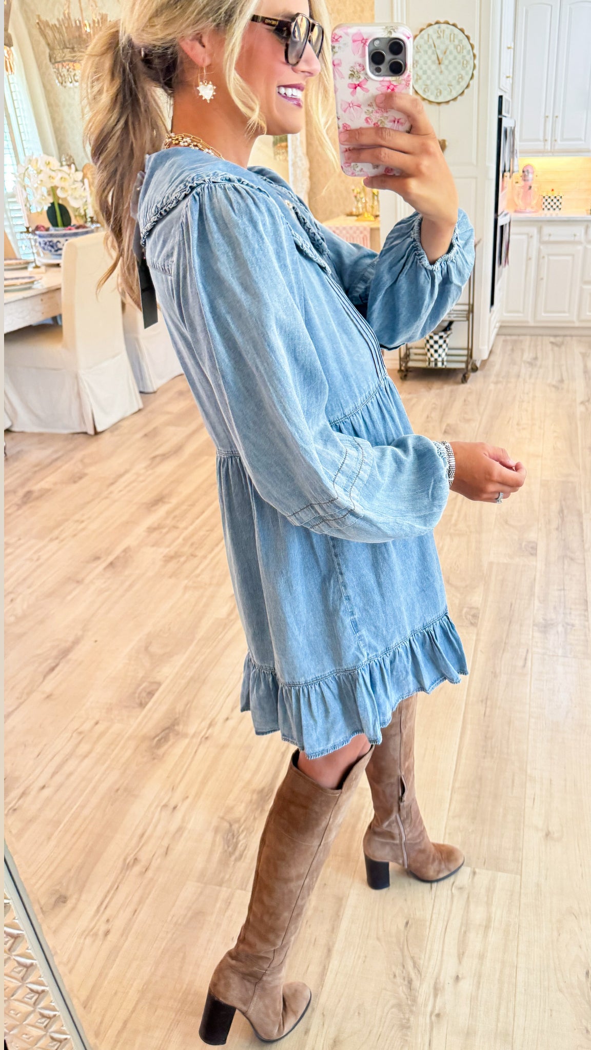 -long sleeves-peter pan collar-front button up-ruffle hem