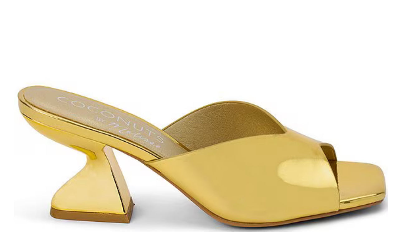 From Matisse, the Soiree Metallic Sculptural Heel Dress Slide Sandals feature: