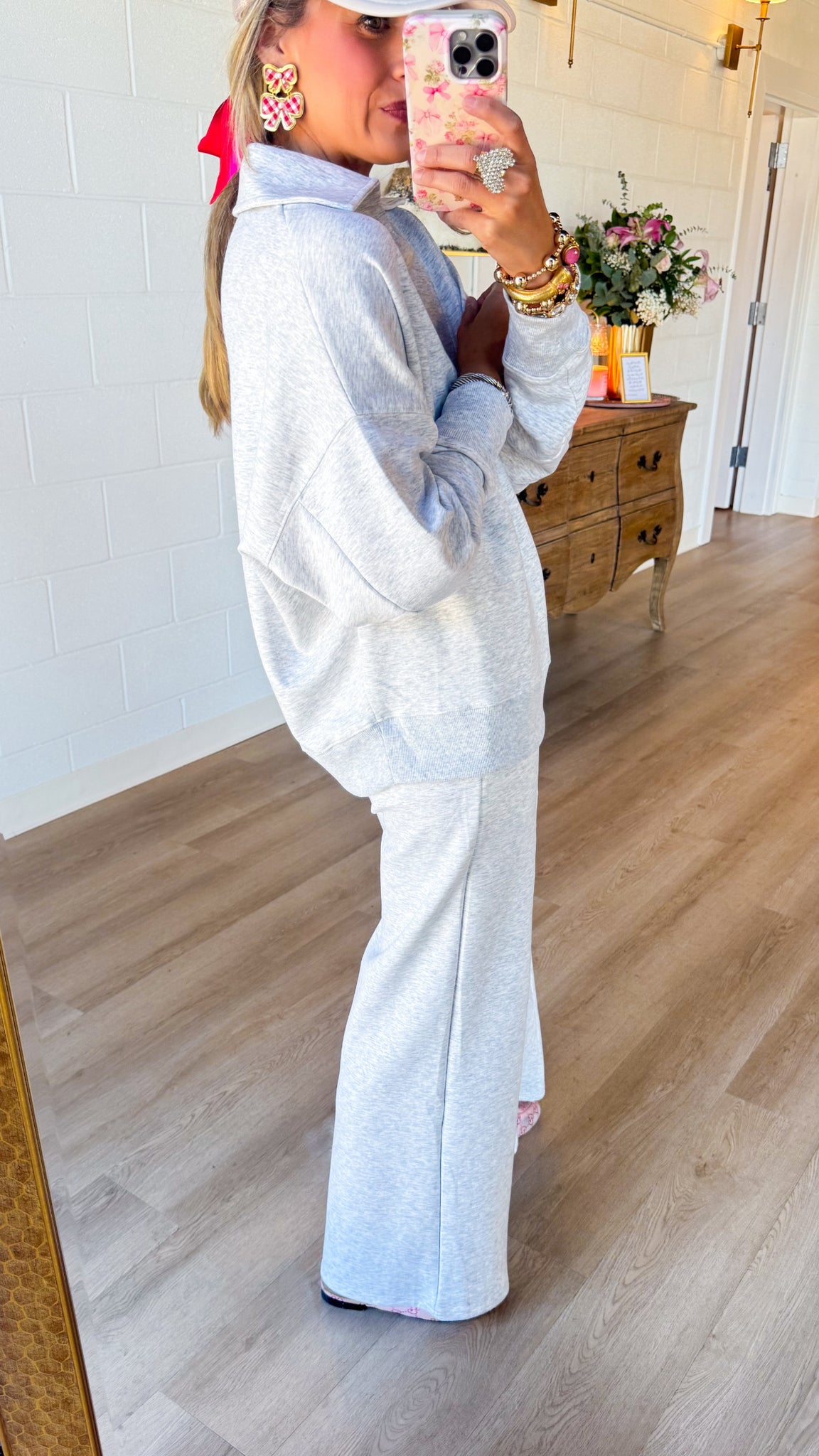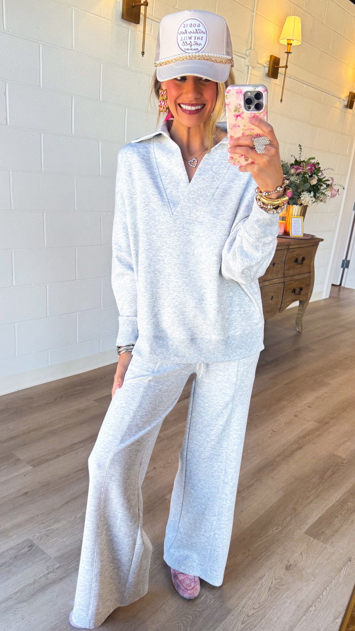-long sleeves-collared-v neckline-elastic waistband-side pockets-wide leg