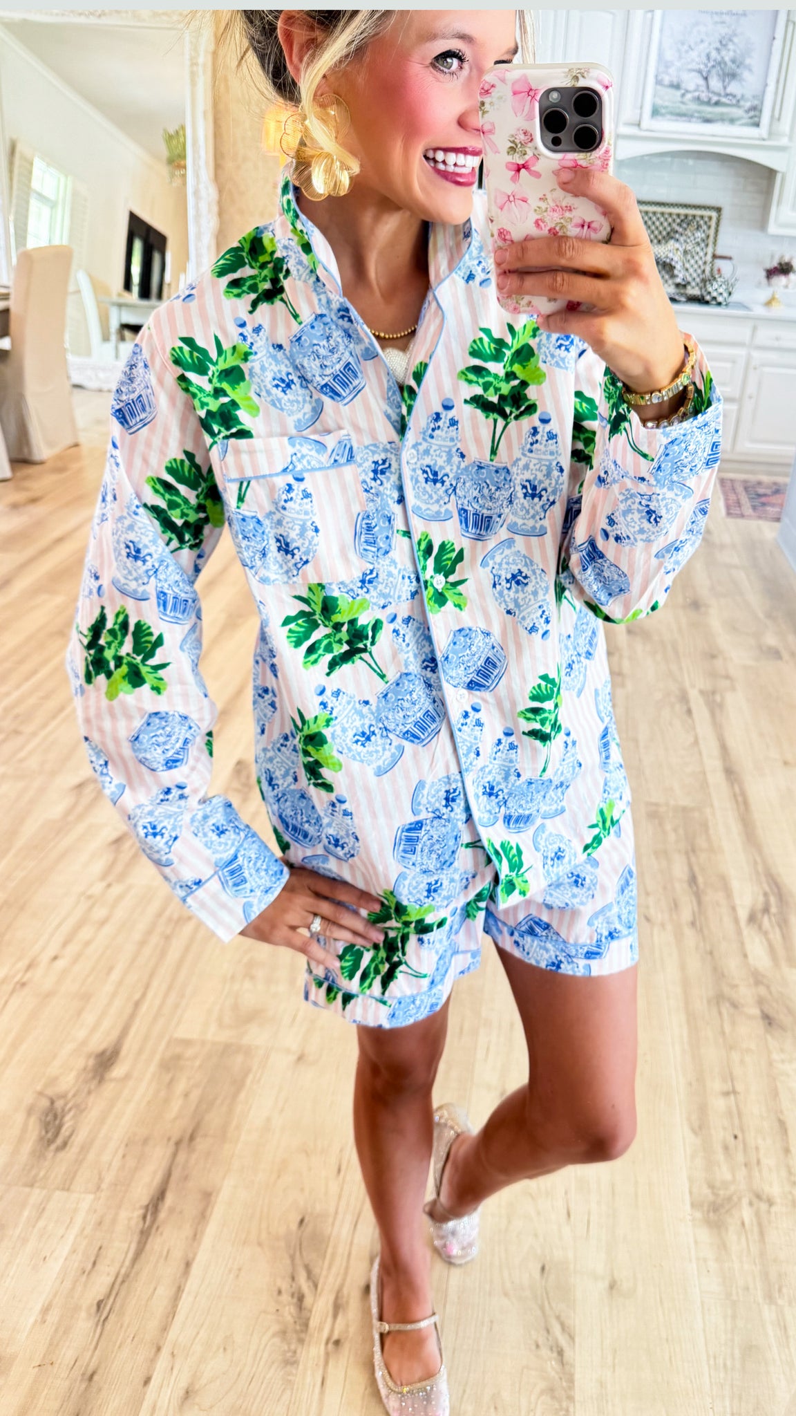 -long sleeves-front button up-collared-front chest pocket-drawstring waists