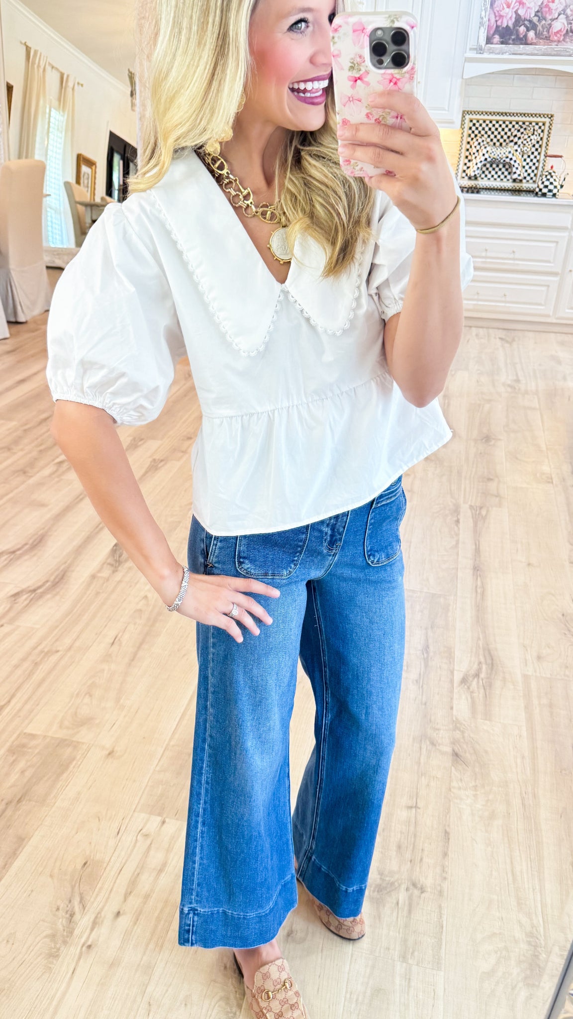 -short puff sleeves-oversized collar-lightweightsmall measures 20” shoulder to hem, 39” bust