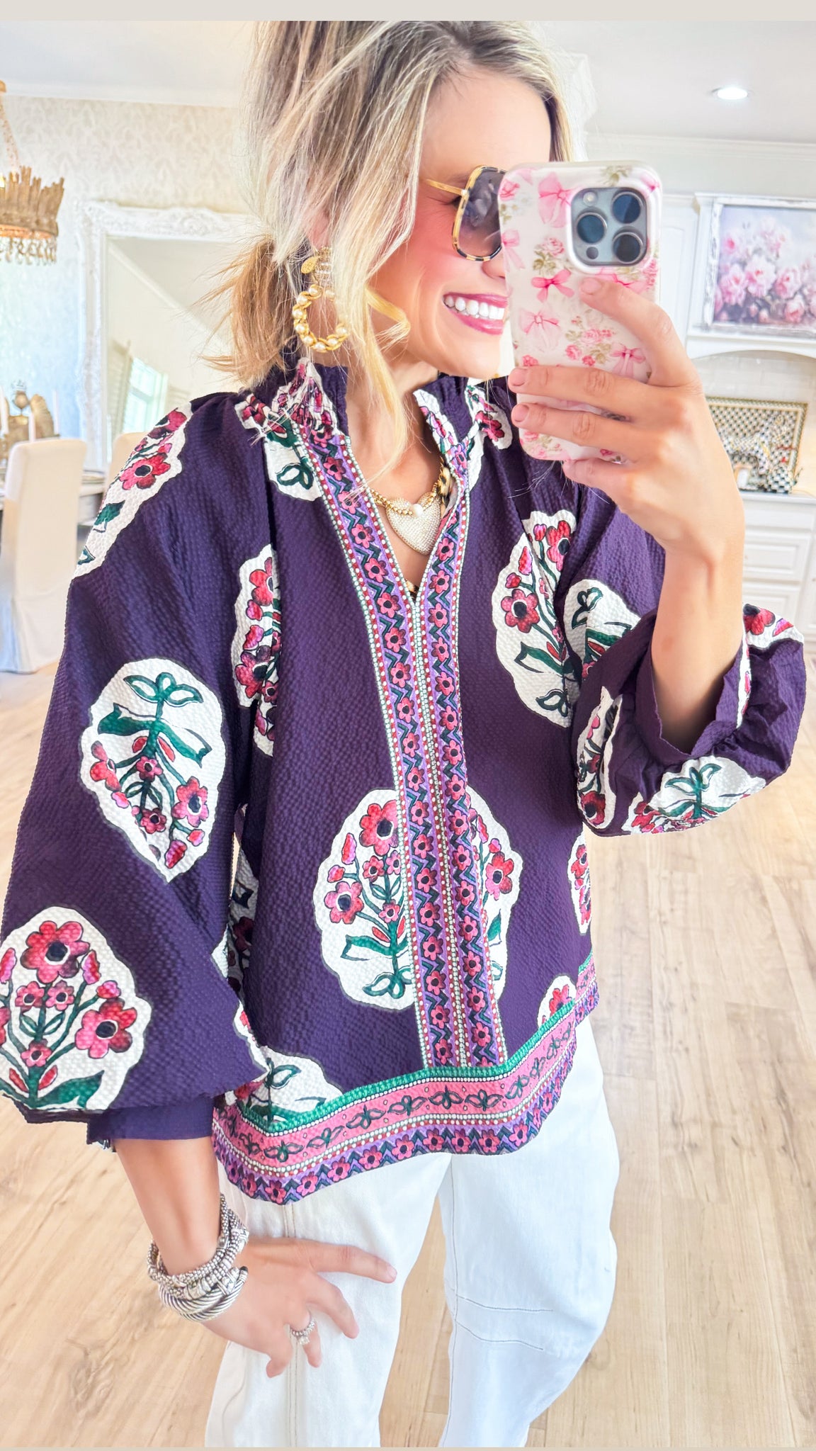 - Split V-Neck - Wide, Flowy 3/4 Sleeve - Non-Lined- High Collar - 100%Polyestser