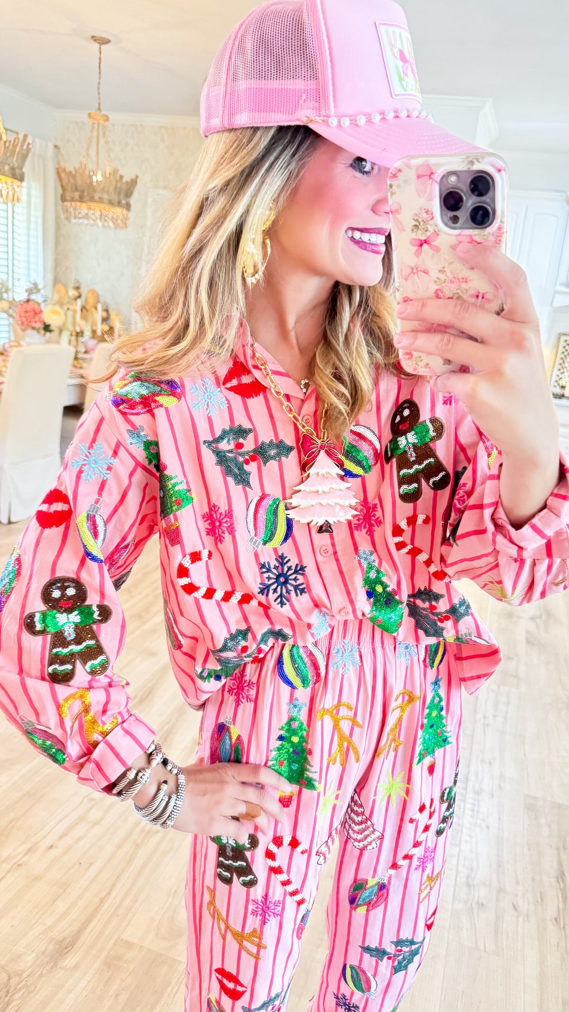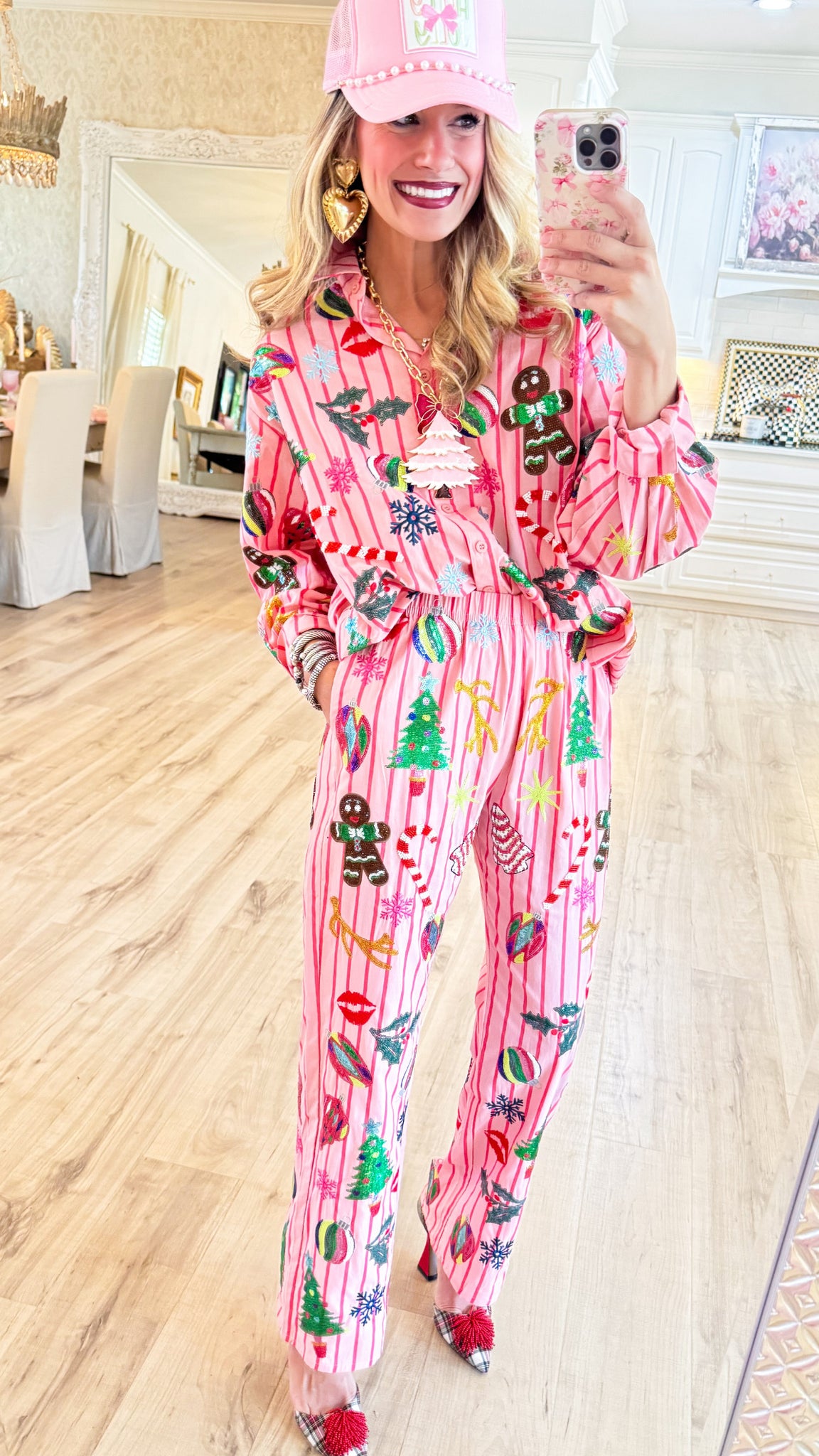 -long sleeve-collard-button up closure-stripe design-sequin detailing
