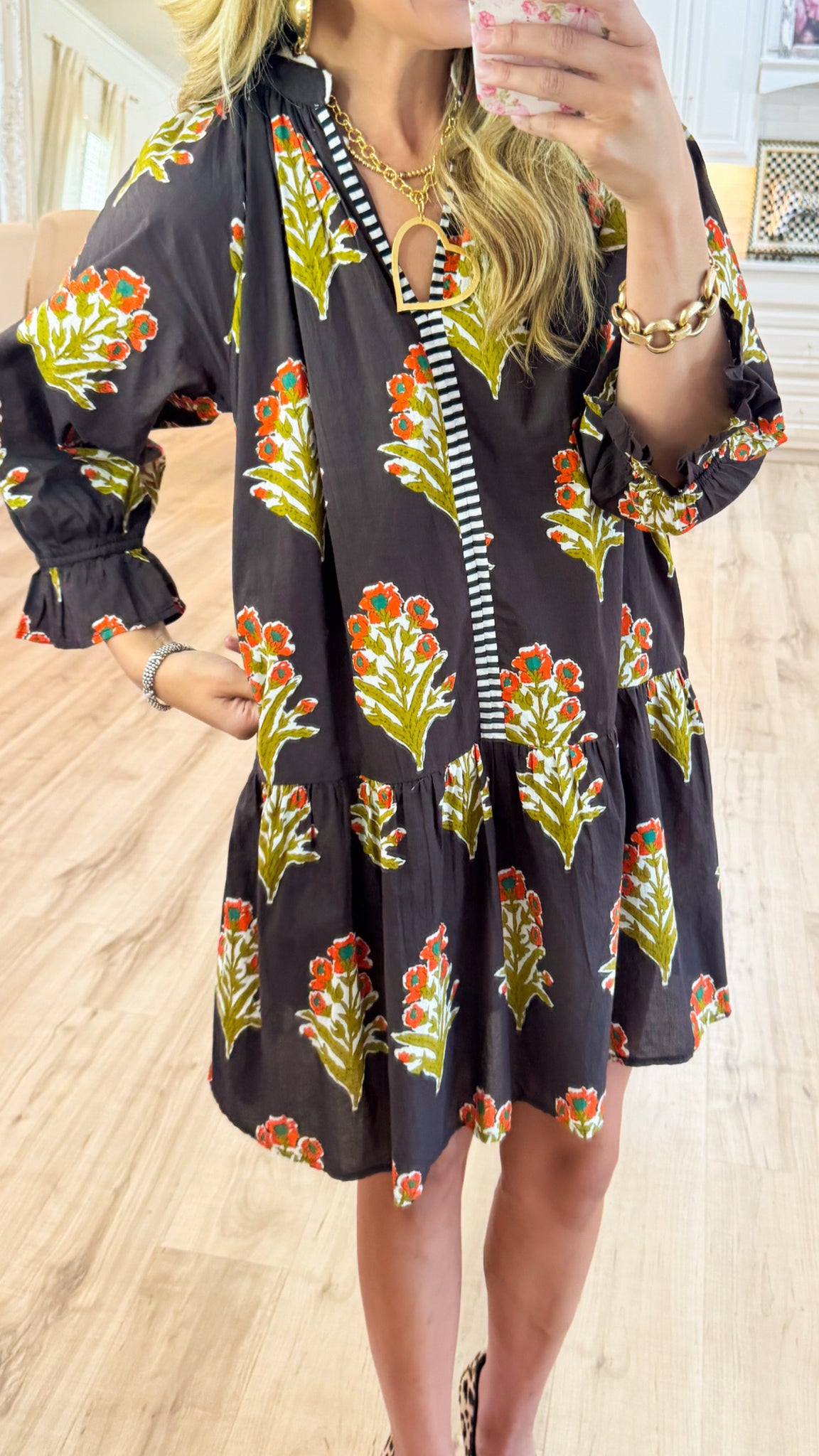 THML Floral Detailed V Neck Dress