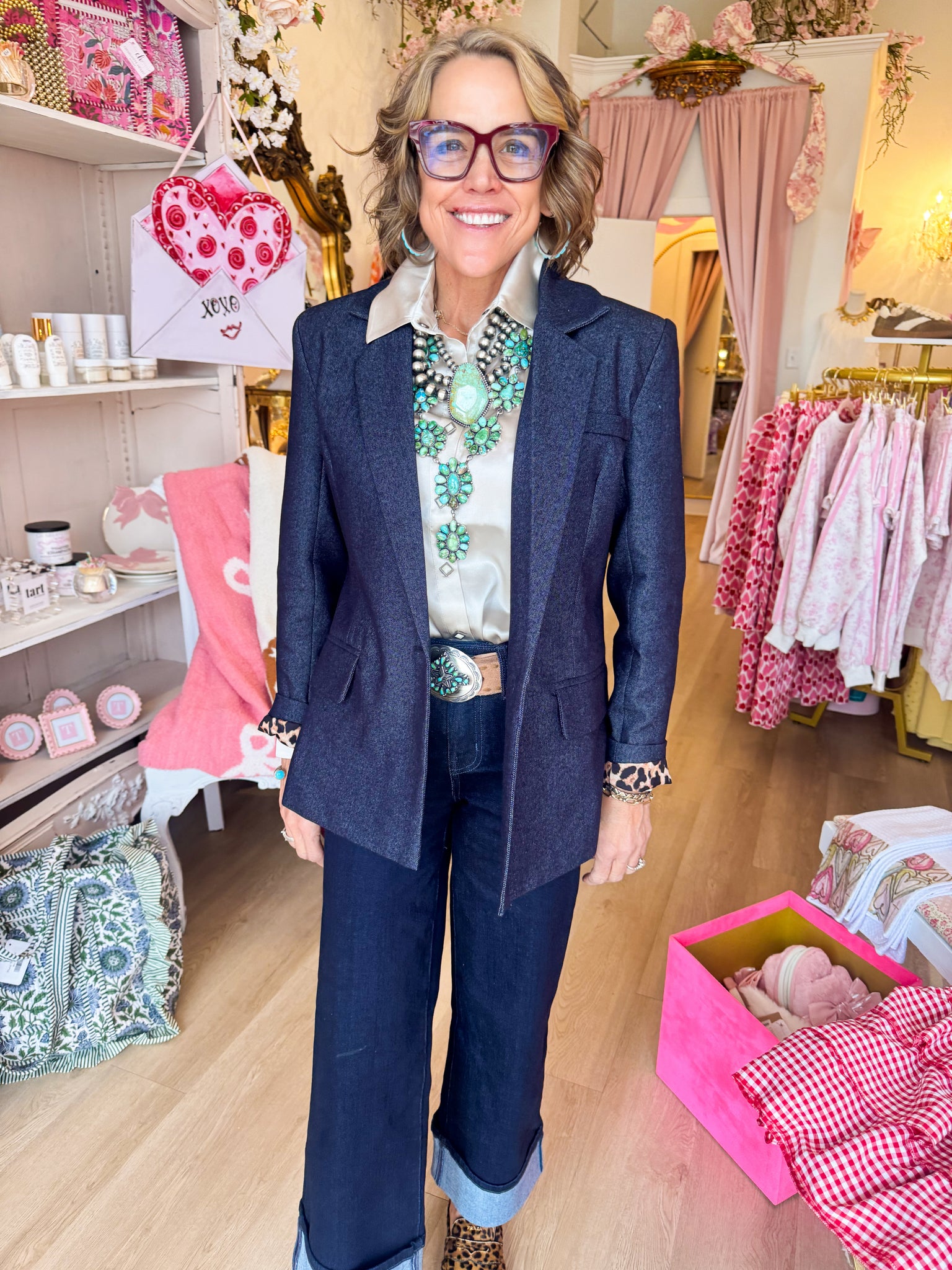 Denim Leopard Lined Blazer