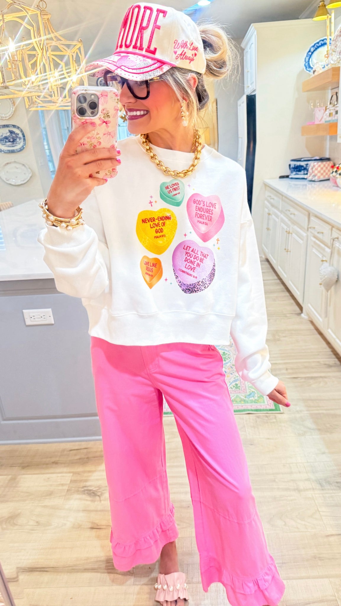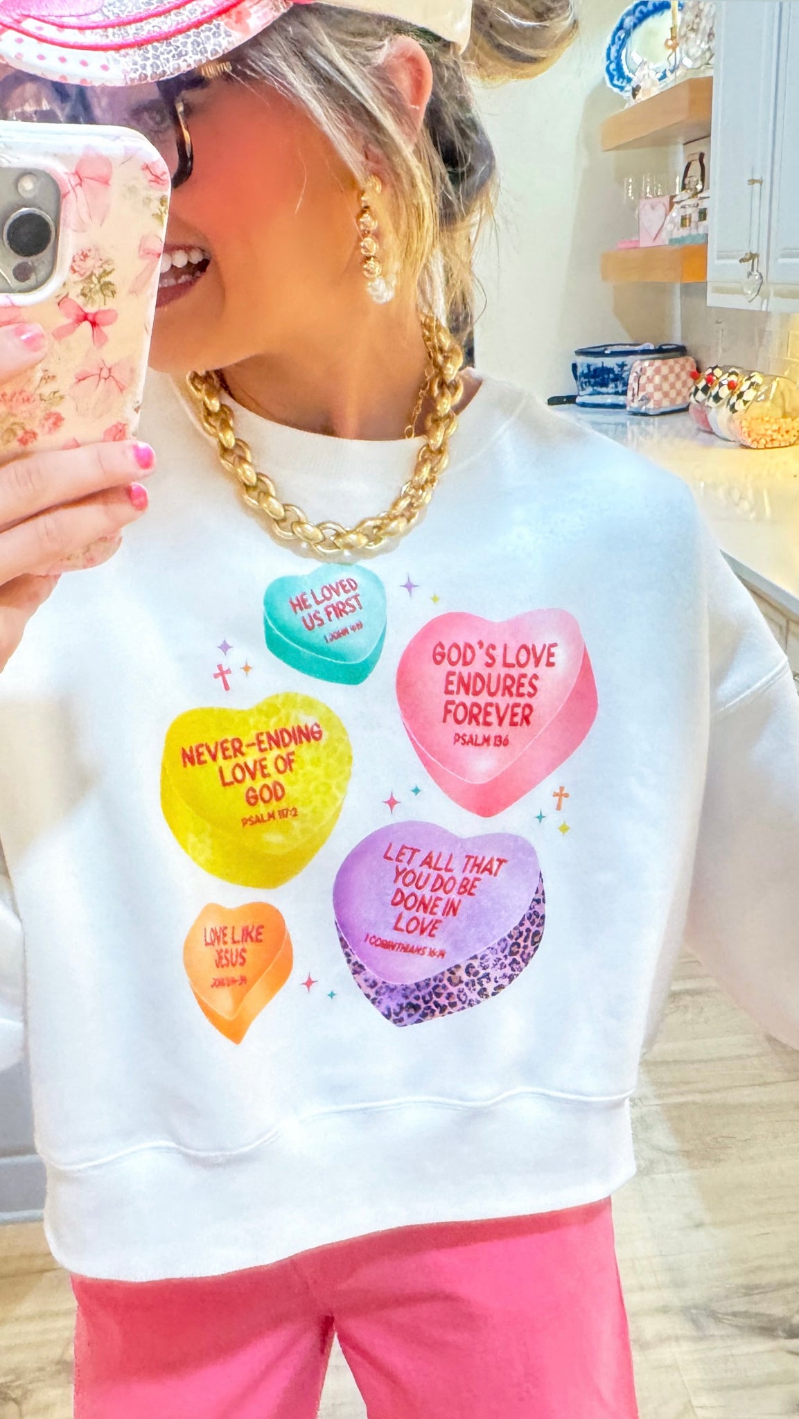 White Multi Color Jesus Candy Heart Sweatshirt